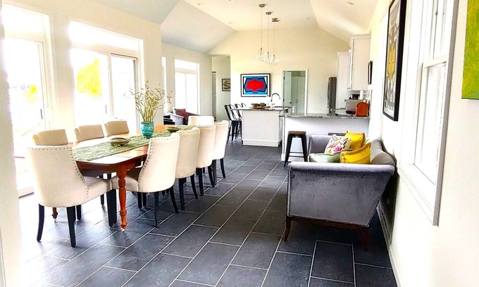 Step inside and discover a harmonious blend of old-world charm and contemporary elegance. With renovated bathrooms and modernized kitchen, the interior exudes a sense of light-filled serenity in every corner. With five bedrooms, 3 of which are on the main level, this retreat offers ample space for a large family or couples seeking both togetherness and privacy. A 2nd floor bedroom in one wing of the house offers 2 twin beds and a private bath making it a perfect “hideaway†for the kiddos in the group.
