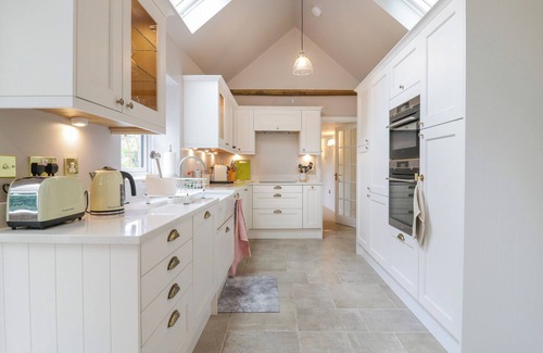 Amenities: Oil-fired central heating, underfloor heating. Electric oven and hob, microwave, fridge/freezer, washing machine, dishwasher, tumble dryer, kettle, toaster. Smart TV, selection of games, WiFi. Fuel, power, and starter pack for woodburning stove inc. in rent. Bed linen and towels inc. in rent. Off-road parking for 3 cars. Enclosed garden with lawn, and garage for bike storage. Sorry, no pets and no smoking. Shop 0.8 miles, pub 0.9 miles. Note: There is a Good Housekeeping Bond of £250