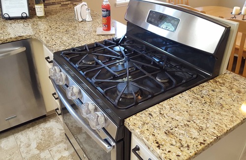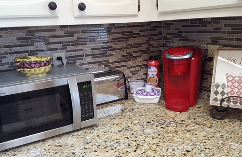 The gourmet kitchen has herbs/spices/coffee and all the necessary items needed to prepare and serve your favorite home cooked meals.