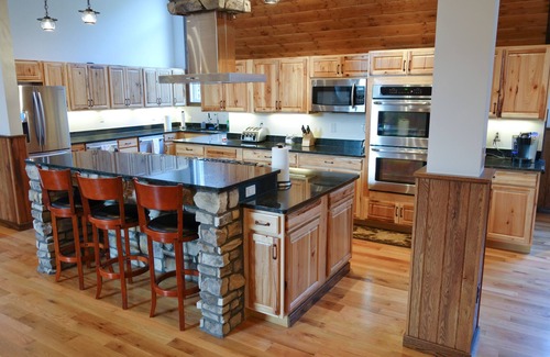 - Elegant Bedrooms: Enjoy 8 beautifully designed bedrooms that feature cozy furnishings and breathtaking views of the surrounding mountains and woods for a relaxing retreat after your festivities.