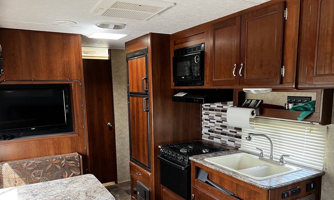 Beautiful private ranch in Western Nebraska with beautiful views of the Wild Cat Hills Range. Wonderful Avenger Touring Addition Bunk House Camper with all the amenities. Sleeps 4 adults comfortably. Full kitchen with access to smoker and propane barbeque. Dish TV and Starlink Internet provided. Well-behaved pets welcome. Great year round with lots of local attractions. Excellent for hunters, campers vacationers and families!