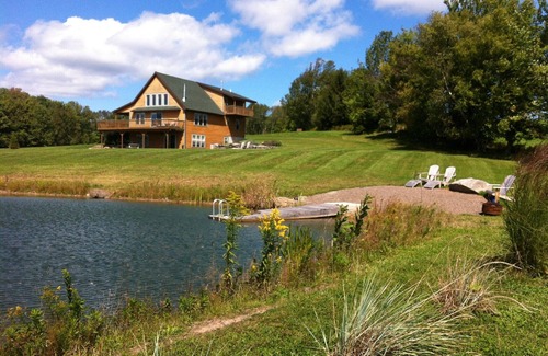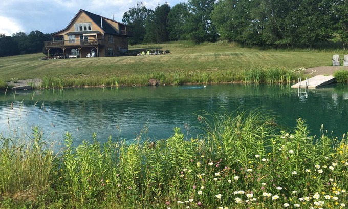 2500 sq ft contemporary farm house with long range vistas, open meadows, swimming pond, 5 minutes to Callicoon hamlet, 10 minutes to Bethel Woods concert venue. Two hours from NYC. Near Delaware water rafting, kayaking and fly fishing. Twenty five minutes from Resorts Worlds Catskills and YO1 Wellness, Yoga, meditation Ayurveda center. Large wrap around porch to watch beautiful sunsets. Lower deck and deck off master bedroom with beautiful views. Walk on paths through the 15 acres of fields with an upper seating area with gorgeous views.
