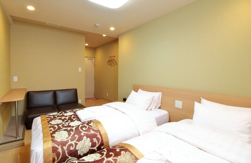 Nagomi Hotel Nagomi Hotel in Tokyo is a 1minute walk from Mikawajima Train Station and 26 km from Asakusa Temple Free WiFi is available throughout the hotel Fullflats Japanesestyle rooms feature a flatscreen TV an electric kettle bathrobe slippers and free toiletries The front desk is open 24 hours Ryokan Nagomi Nagomi Hotel It is a 2minute train ride from Nippori Station to Nippori Station It is a 5minute train ride from Ueno Station It is 38 km from the Tokyo Sky Tree and the EdoTokyo Museum is 43 km from the hotel Ryokan Nagomi Nagomi Hotel It is a 51minute train ride from Nippori to Tokyo Haneda International Airport and Narita International Airport is a 70minute train ride / It becomes a Westernstyle twin room