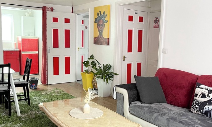 This 1st floor 3 bedrooms airy, well-appointed and stylish apartment can comfortably sleep 5 people. It is the perfect place to relax and unwind with your friends and family for short or long stay. Your home away from home. 2 of the bedrooms have 1 double bed each and the 3rd bedroom has a single bed. You can explore the sights and local attractions of Romford and Dagenham - there is so much to see and do here As a self-catering apartment, you'll find everything you need for a perfect stay. The kitchen has a fridge, a hob, an oven, a kettle, a freezer and a microwave. The apartment is a perfect place to relax and offers a television and free internet access. There is a full functional bathroom which has a toilet and sink and a bathroom / shower and 1 extra WC / sink only room.