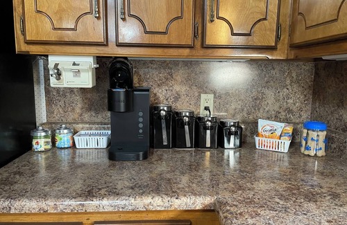 The kitchen is fully stocked with all dishes needed to prepare fresh meals. Besides dishes, there is a Keurig, Keurig cups, bottled water, and other miscellaneous goodies. The bathroom has all the necessary linens, as well as shampoo, conditioner, and body wash. We also leave out small toiletry items that you may have forgotten when packing for your trip. The living area and the bedroom have a large television with access to Netflix. We also provide free blazing fast Wi-Fi.