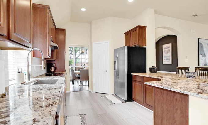 "Welcome to our Clean and Cozy 3 Bedroom /2 Bath - 2,125 sq. foot home, we're so excited to have you! Our beautifully furnished single-story home has an open floor plan and can be accessed without the use of stairs, making it accessible and roomy enough for all our guest's needs. We are tucked away in a quiet family neighborhood and close to many of the cities prime attractions including The Star, Shops of Legacy, FC-Toyota Soccer Stadium, Dr. Pepper Field, Toyota HQ, Lake Lewisville, and much more