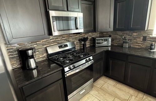 Discover the beauty of El Paso from this 3-bedroom house. With 2 king beds and 2 twin bed, guests can enjoy a peaceful and wonderful stay. This cozy retreat offers amenities like WiFi, and 80- inch television screen, AC, and a fitness room. The 2 bathrooms come equipped with a hair dryer and shower . A great place to call homebase while you're away, we hope you enjoy your stay.