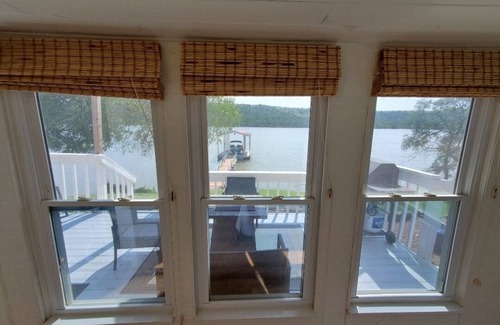 Come enjoy this lake front cabin and enjoy some of the best sun rises from the patio. Or enjoy gazing at the moon and night sky from the fire pit at our sand beach. Walk out the front door and enjoy fishing, kayaking, and swimming. Bring your boat as this property has a new dock to tie up your boat. Owner will have their boat on lift so bring your bumpers to tie up. Cleats for tie up are installed. All guest that book a minimum of 5 days or more. Owner will remove boat and allow use of lift with an additional $50 per day usage fee. (Please confirm ahead of time if you wish to use Lift). Property next door does have a boat ramp that can be used for small boats only. The ramp is steep and narrow so only advised to use for boats 21ft and under. If you're not the best at backing up a trailer or your boat is bigger than 21ft. Then it would be best to launch at the State Park then drive your boat around to the cabin. (Park is 5 miles away by vehicle). Inside the cabin you will find that it comfortably sleeps 6 adults, bedding available for 8 adults. The property is located in a no wake zone great for fishing Striped Bass. If you love to surf, go right around the corner from the cabin to enjoy a nice cove with deep water. Hells Gate and most restaurants are short boat ride away.