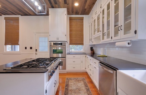 Complete with gorgeous original finishes, updated furnishings, and a dedicated office with a library and a poker table, this 4-bedroom, 3-bath vacation rental house is the ideal place to host your next trip to Texas! Immerse yourself in the charm of downtown Columbus, take a stroll along the Colorado River, or drive into Houston for a day of big-city fun. After a long day of adventure, indulge in a friendly game of ping-pong in the detached clubhouse before enjoying dinner on the covered porch.