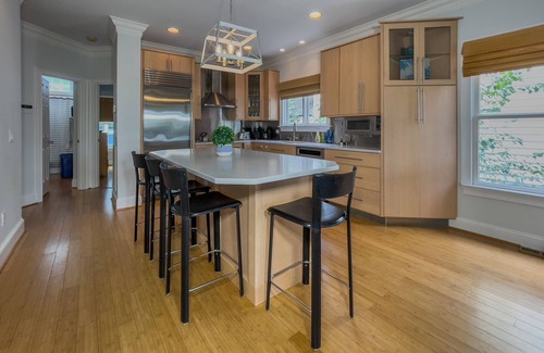 - Well-Equipped Kitchen: Craft delicious meals and celebrate with loved ones in the fully equipped kitchen featuring top-of-the-line appliances, casual bar seating, and a wine and beer refrigerator.