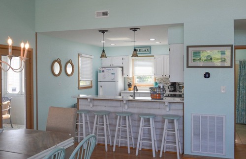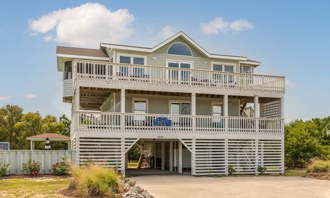 This pet-friendly retreat offers flexible stays outside of Memorial Day to Labor Day and provides all the beach essentials, including a beach cart and chairs for stress-free days in the sand. With its open-concept reverse floor plan, multiple outdoor decks, and incredible Ship's Watch with sweeping ocean views and sunsets, Whaler's Inn makes it easy to unwind, reconnect, and enjoy all the Outer Banks has to offer.