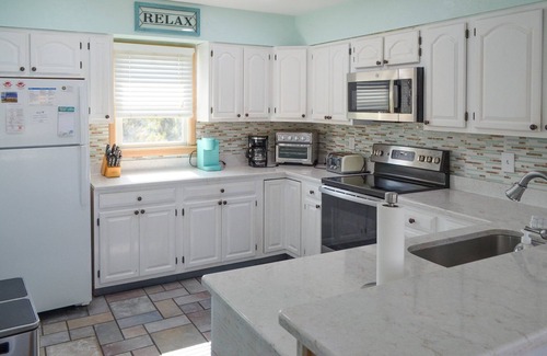 A fully stocked kitchen and comfortable common areas make entertaining a breeze, whether you're hosting a family dinner or enjoying movie night after a day at the beach.