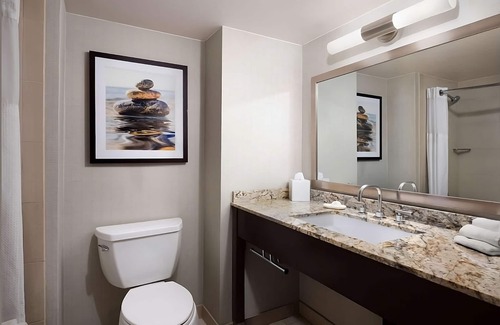 The hotel offers a variety of amenities to make your stay enjoyable. Our outdoor pool is perfect for soaking up the sun, while the whirlpool on the pool deck is perfect for a soak. You can keep active with a workout in our 24 hour fitness center. Guests can either purchase light snacks and beverages from the gift shop, wellness station, or at the on-site restaurant, which offers a variety of delicious meals. The bar is perfect for a cocktail. For added convenience, we also offer a business center, a 24-hour front desk, and room service. Onsite parking is available for guests who are driving.