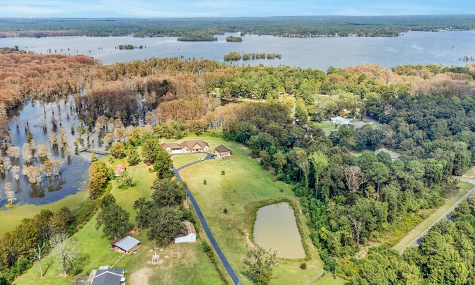 More info: The estate is like a small neighborhood with only 3 houses. Everyone has their own private areas and has access and views of the lake. It is extremely quiet, comfortable and safe. Sounds of nature are super relaxing. There is a floating deck for parking of boats. A huge dog playground, kennel dog beds, bowls, toys and more. Many have referred to this unique location as utopia, a slice of heaven and a destination place. There are outside propane heaters, BBQ pit and patio furniture. The pond in the front is clean and fully stocked with 3 types of fish.