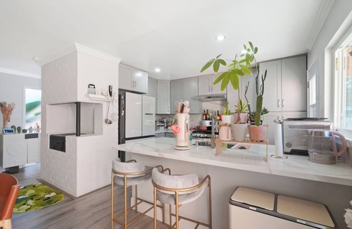 The kitchen is a foodie’s dream — fully stocked and featuring premium appliances like an air fryer, steamer, rice cooker, and KitchenAid stand mixer.