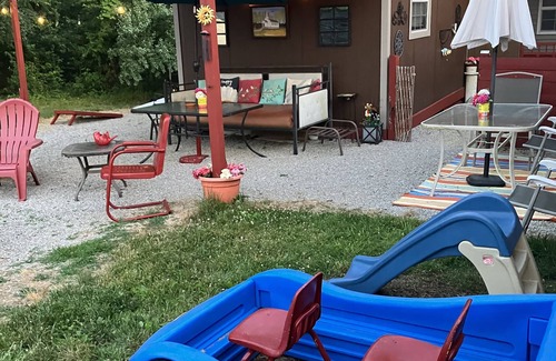 Our land is your playground... Fire pit, paddleboat, foosball and corn hole on-site as well as plenty of green spaces and mini woods for a mini hike.