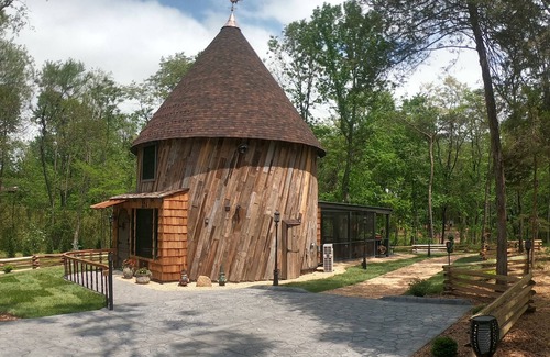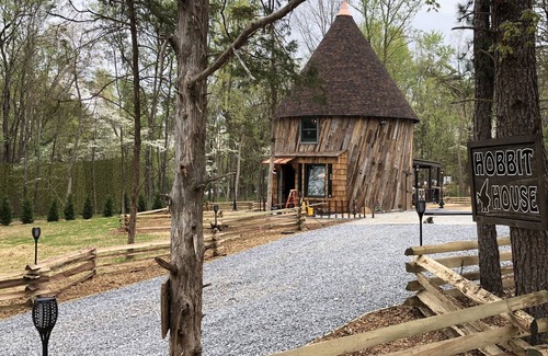 Where Hobbits vacation above ground when in the "Virginia Shire". This unique, whimsical creation will sleep up to 4 guests. Hobbits do love luxury and you will find that and more here at Hobbit House! We offer in house surround sound with SiriusXM and a Bluetooth connect feature, gorgeous large tiled shower, a wood burning fireplace, outdoor grill, fire ring area, screened in porch and hot tub. Management is available 24/7 with just a phone call or text.