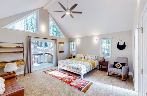 Nestled on a scenic seven acres within Tahoe National Forest, you'll discover Peaceful Pines. Full of whimsical and convenient amenities, you'll have no problem feeling right at home. When you aren't gazing up at the property's majestic 100-foot pine and cedar trees, hop on Highway 20 and take a short drive to historic downtown Nevada City. Boreal Mountain and Soda Springs, two family-friendly Tahoe ski resorts are a 35-minute drive from the property, perfect for snowy day trips. Beautiful hotspots like the Yuba River and Scotts Flat Lake are also a quick drive away. Additionally, there are countless hiking and biking trails surrounding the property.