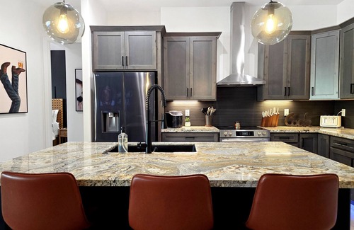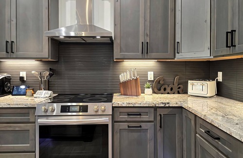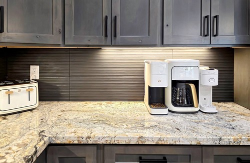 The modern kitchen is a chef’s dream, with sleek quartz countertops, new stainless-steel appliances, and custom tiled backsplash. You’ll find everything you need to cook tasty meals for the whole family, whether it’s fine dining or prepping quick snacks for days on the go. Make morning coffee just the way you like it with multiple options to get your caffeine fix.
