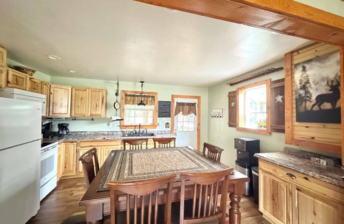 Beautifully surrounded by water. There's a creek in the backyard & a large pond in the front yard of the lodge. Fish or just kick back & enjoy the peace & quiet. The lodge has an open floor plan . The main level - kitchen is fully stocked , the living room is a warm & cozy space with the wood burning stove - bedroom with queen size bed & french doors leading to the back deck- laundry room / office with french doors to the deck & the half bath . The 2nd level offers an open loft with a full size bed - full bathroom with a shower only & the large master bedroom with King sized bed , propane fireplace & french doors leading to a private deck overlooking the back yard with views of Lick Creek. The lodge is centrally located , there's so much to do within a half hour drive . Hiking , Biking, Rickett's Glen , Worlds End State Park , Kast Pond, 25 must see waterfalls , The Haystacks & more .