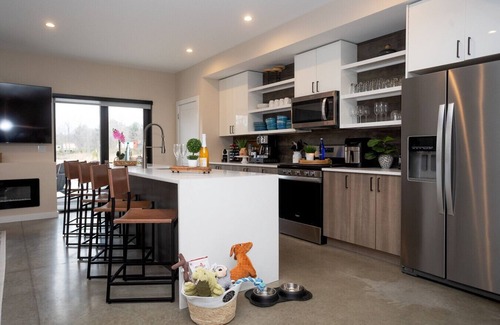 - Fully Equipped Kitchen: The modern kitchen features ample counter space and a large island, allowing you to prepare festive meals or hire a private chef to cater your wedding events seamlessly.