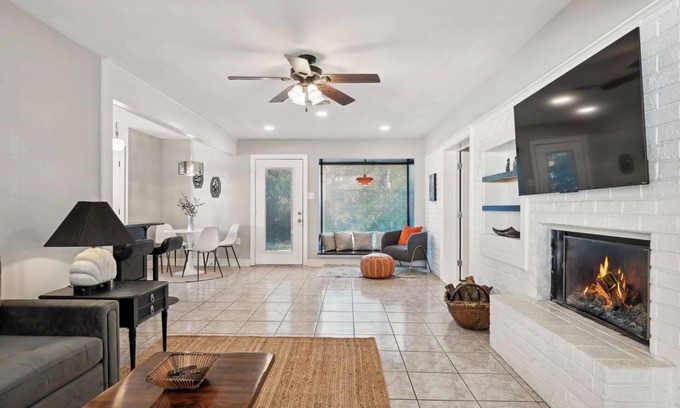 Welcome to "The Cottage" of Whispering Oaks. This peaceful paradise is just a short 45 minute drive to New Orleans with a style all its own. Immerse yourself with your morning coffee in the courtyard, by the indoor fireplace or cozy up by the outdoor firepit. No matter the spot, you'll be surrounded by the sounds of nature in this well appointed 2 bed/ 2 bath oasis that is minutes to Historic Downtown Covington and comes with a dedicated workspace and stocked gameroom complete with TV, bumper pool/card table, darts and oversized connect four.