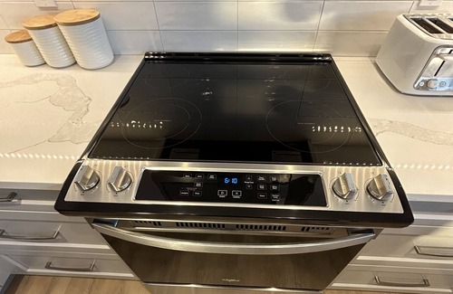- Amenities include multiple zoned heat pump Air Conditioning, a fully equipped kitchen with brand new stainless steel appliances including a dishwasher, refrigerator with freezer on top, oven with glass top stove and over the oven built-in microwave. 65" flat-screen TV with Netflix, free (SpaceX - Starlink) WiFi, Amazon Alexa , beautiful eco-friendly 6-foot Linear electric fireplace, BBQ grill, fire table, covered deck, washer and dryer, concrete driveway parking for 2 vehicles and more!