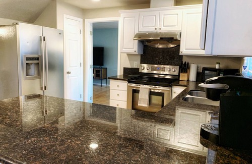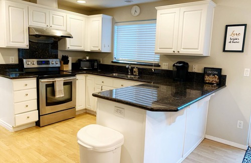 Your own beautiful 2 level house with 5 bedrooms (1 king, 3 queen beds & a twin) and 3 baths (2,250 sqft) in Beaverton - west of Portland. Gated parking, with additional 3 car driveway parking spots and street parking. Washer/dryer in house. Pool, Pingpong table for your entertainment. Recently remodeled house granite countertops, stainless appliances, hardwood and new carpet. Large patio and private backyard with propane grill. Walking distance to grocery store, dining, etc. Book today!
