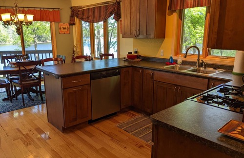 Escape the hustle and enjoy the Northwoods as it is meant to be--with pristine, unspoiled vistas, peace, and quiet. We are located on a peninsula on 200 acre Wind Pudding Lake, with 450 feet of frontage and water on three sides. Wind Pudding Lake is rated as one of the top 10 clearest lakes in Wisconsin by the UW-Extension Program. Our house is situated just 60 feet from the shore and commands panoramic 180 degree views.