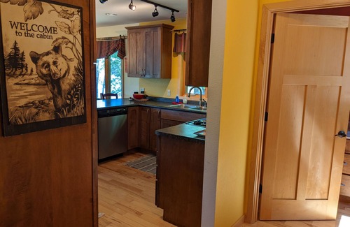 Our home has 2 full baths upstairs and a main level half bath. The kitchen has stainless steel appliances, including full size refrigerator, oven, stove, microwave, and dishwasher. Cooking utensils, dishes, coffee maker, and toaster are provided for your use. The living room contains a leather sectional and leather recliner, with flatscreen TV, DVD player, Fire TV, Netflix, Disney+, Hulu, and HBO Max. . There is Wi-Fi internet and a wide selection of DVDs, books, and games.