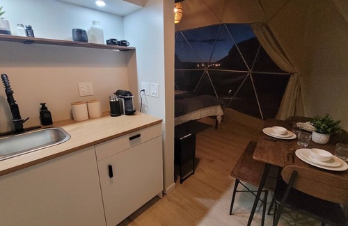 While you're here, you can enjoy all the comforts of home and more, including a rainfall showerhead and a full-sized refrigerator/freezer, as well as a stovetop and free WiFi. Other amenities include a freezer, towels, kitchenware and utensils, and a picnic area.