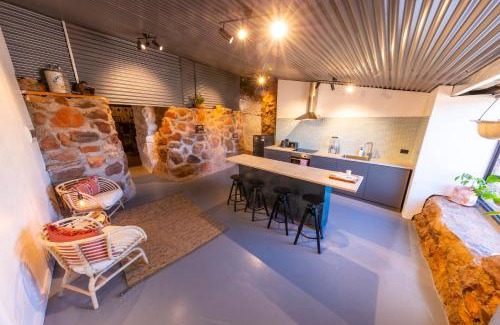 Featuring a garden, White Cliffs Accommodation -Daybreak Dugout - Unique Cave House provides accommodations in White Cliffs. There's a sun terrace and guests can use free Wifi and free private parking. Providing inner courtyard views, this vacation home also offers a flat-screen TV, a well-equipped kitchen with a dishwasher, an oven, and a microwave, as well as 1 bathroom with a shower and a hair dryer. The vacation home offers bed linen, towels, and ironing service. A mini-market is available at the vacation home. Guests at the vacation home will be able to enjoy activities in and around White Cliffs, like hiking. Guests can also warm up near the outdoor fireplace after a day of cycling.