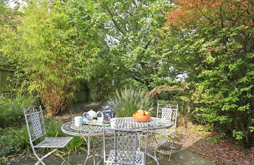 Outdoors: Patio, gravelled borders and garden furniture
