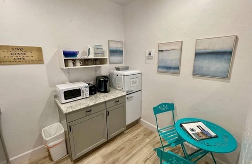 This is a Master Suite and is completely private. The only shared space is the driveway. There are two other units on the property that share the driveway. We provide starter coffee and tea for your stay.
