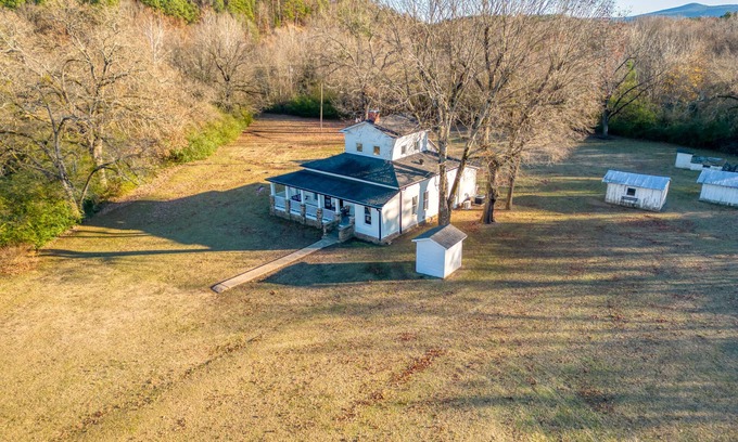 Take it easy at this unique and tranquil getaway, nestled between the Ozark and Ouachita Mountain ranges. Unwind and enjoy the slow, rural stillness of this 4+ acre locally historic property. The Waveland White House conveys the serenity of yesteryear. With abundant daylight and a deep sea of night stars, come here to relax, reset, and renew. Take in the view of Mount Magazine from the front porch. Access to Blue Mountain Lake is within 2 miles. With tall ceilings, generous rooms, and amazing views, this is a charming 115-year-old house. Built in 1907 by the area doctor, it was a birthplace/healing space for prior generations of the local citizenry. Set back from a quiet country highway, the house is surrounded by woods on three sides, with a creek on one side. Enjoy visits from a family of crows that reside in the area and seasonally returning hummingbirds. Deer, possums, and raccoons wander through as well. The sound of flowing water from the creek and occasional crowing from a faraway rooster offer the perfect rural soundtrack.