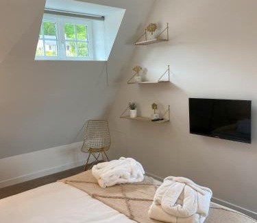 A good location for a hassle-free getaway in Villequier, White House, maison d'hôtes is a guest house surrounded by views of the river. The property features a garden, terrace, and private parking among other facilities. This guest house provides a shared lounge. The accommodation features a spa facilities, wellness packages, family-friendly restaurant, and free Wifi. All rooms are complete with a private bathroom and air conditioning, and certain rooms come with a balcony. At the guest house, every unit is equipped with bed linen and towels. A bicycle rental service is available at the guest house. Parc des Exposition de Rouen is 31 miles from White House, maison d'hôtes.