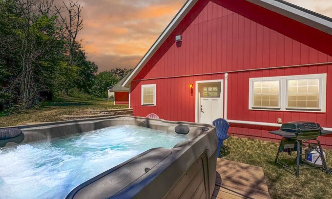 Welcome to our Dream Cabin! Nestled on 4 acres, this cozy retreat boasts 1.5 baths, a master bedroom with a king bed, plus a loft with a queen + trundle bed. Enjoy the warmth of our Vermont Castings gas fireplace, unwind in the brand new hot tub, or gather around the firepit. With AC throughout, radiant heat floors, and a whole house generator, comfort is ensured. Indulge in high-quality linens, 50-inch TV with YouTube TV, or work at the loft desk. Don`t be surprised by frequent deer visits! The hot tub is year round!