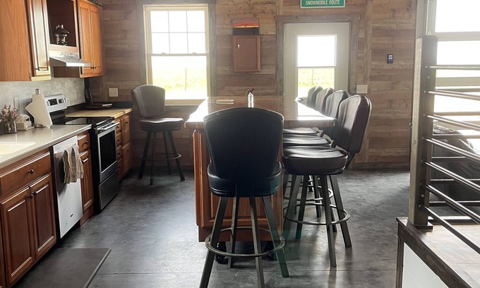 A unique island with a 4' wide solid piece of live-edge white oak will be your favorite inside gathering spot for card games or just hanging out after a long day of fun in this beautiful area of Wisconsin and NW IL. When the weather is nice, open the all-glass overhead door to expand the living space to the outside patio.