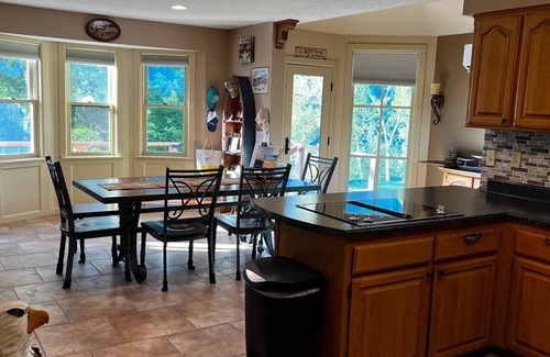 Rent the main house along with the adjacent cabin. House boasts 3 bedrooms, 2.5 baths, laundry room and beautiful river/game room with room for everyone! Cabin has queen bed in bedroom, and futon in living room too! Cabin has shower and toilet, fully functioning kitchen.
