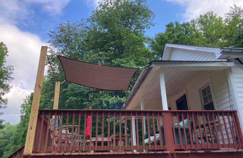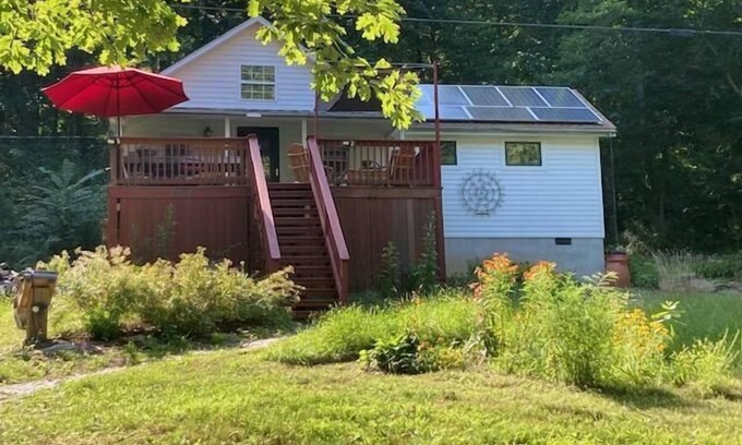 White Rock CabinEnjoy the feeling of camping/glamping, while having the comfort of a regular cottage. Sit in the hot tub and enjoy the stars, enjoy a fire in the fire pit. We areon a gravel road that runs along the North Fork of the Tye River, in the middle of the George Washington National Forest. There you can findsolitude among native plantings, tall trees,and the porches overlooking mountains and woods. You'll find the kitchen amply provisioned whether you want to grill, smoke or microwave. From our front door you can walkalong the trout-stocked riveror you can venture out to locals-onlyhikes, 250 year old operating orchards/berry farms,Crabtree Falls, the Appalachian Trail, and Blue Ridge Parkway. All are withinseveral miles, and it is30 minutes to the 151 trail of wineries, cideries, and breweries, as well as Wintergreen. The cabin features a hot tub, a fire pit, outdoor shower andhas two bedrooms, each with a with queen bed. New for 2023, high speed internet. Note: there is no direct cell phone coverage, there is a house phone, and some cell carriers allow wifi connection for cell phones.