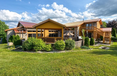- Dog-friendly home with private pond, wraparound porch & fireplaces