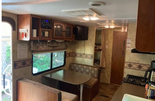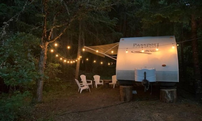 Our Keystone Passport Ultralite is nestled in a thick stand of Fir, Pine, Oak, and Maple trees and is surrounded with abundant wildlife. We are minutes from downtown White Salmon and Hood River. Whatever brings you to The Gorge, this RV will be a perfect base camp for you. We stock our camper with bottled water, fresh eggs, instant oatmeals, herbal teas, coffee and creamers. If there's anything else you may need just let me know.