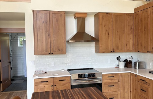 Relax with the whole family at this peaceful place to stay. Beautiful, well appointed, brand new all wood chalet style construction with amazing Mt Hood and nearby Columbia River views. Set in a serene open stand of trees well spaced from any neighboring properties. Close to top kite and windsurf launches, wineries, White Salmon River rafting and kayaking, and incredible fishing, hiking and mountain biking. Incredibly quiet yet only 5 minutes from the best downtown White Salmon restaurants. The whole house is available as shown. We do use a small basement apartment with separate entrance next to the garage for ourselves at times but we will not bother you.