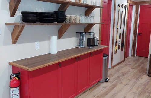 THE BUNKIE (BEDROOM 3) ACCOMMODATES 2 PEOPLE, AND IS AVAILABLE IN THE SPRING, SUMMER, AND FALL, FOR AN EXTRA FEE. It has a queen size bed, fireplace, table and chairs, small fridge, keurig, toaster, and linens. The bunkie is cozy and offers an extra bit of privacy from your group.