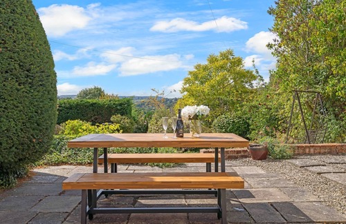 The dining terrace here is a special spot. Set the table and bring out the bottles of bubbly for a celebration as you soak in your setting. Spreading before you the garden has lawned areas and secret hidden seating if you're looking to get away from it all. When in bloom there are beautiful roses adding their scent and a bit of magic to this cottage.