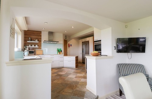 The living areas in this holiday home consist of a kitchen/diner equipped with double electric oven, hob, microwave, fridge/freezer and dining seating for six and a utility with washing machine, tumble dryer and dishwasher, there is also a living/dining room with woodburning stove, Smart TV and dining seating for eight, there is also a games room with pool table and a conservatory. The bedrooms consist of two ground-floor king-sizes with TVs, one has an en-suite shower room, a ground-floor twin and a twin with en-suite cloakroom all serviced by a ground-floor bathroom. Outside there is ample off-road parking and a wrap-around lawn and patio with furniture. Within 1.2 miles there is both a shop and pub. Highchair, stairgate and travel cot available on request. Sorry, no pets and no smoking. WiFi, fuel, power, bed linen and towels are all included in the price. Explore Ayrshire at Whiteside Cottage. Note: There is a large drop from the raised lawn in the garden, please supervise children at all time and take care. Note: There are steep stone steps in the garden, please take care. Note: The first basket of logs for the woodburning stove is complimentary, additional logs can be purchased.