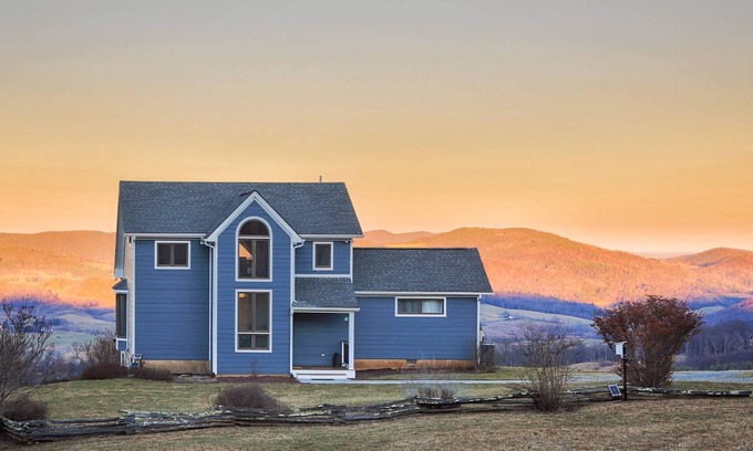 Three bedrooms sleep seven comfortably (4 adults, 3 kids). The spacious kitchen has everything you need to settle in for a while with all the necessities. Sip your coffee over breakfast, and take in a gorgeous panoramic sunrise over distant hills before heading out for the day. Marvel at the warm glow lighting the valley right from a large sectional sofa as the sun sets. Enjoy a night cap outside and see millions of stars and the sweep of the Milky Way as you haven’t seen it before in Virginia from the deck after the sun sets, or roast marshmallows in the fire pit just off the back patio.