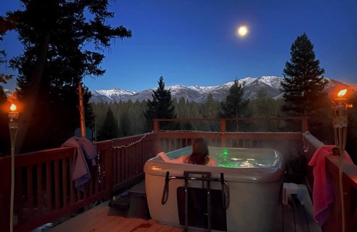 *6-7 person hot tub with spectacular mountain view from the overlook deck