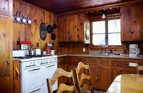 This cozy cottage is the perfect getaway for up to 10 people who desire to step back in time, relax in a quiet wooded setting on the lake, play games, put together puzzles, kayak, swim and create new memories in a home established in the 1940s. Don't let the age fool you, the home is appointed with many modern comforts.