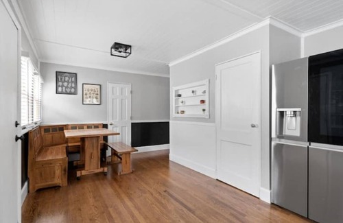 Cook with confidence in the fully equipped kitchen, complete with sleek quartz countertops, new stainless steel appliances, and all the essentials to prepare anything from a quick snack to a gourmet meal. Original refinished hardwood floors, dedicated workspace, and thoughtful touches throughout the home create a warm and functional space for work or relaxation.
